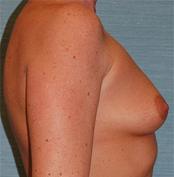 This is a 31-year-old female who wishes a breast augmentation to improve her body proportions. She has been thinking about a breast augmentation for greater than 10 years. She has 2 children for which she has breast fed. She stopped breast feeding greater than 9 years ago. Since then her right breast is larger than her left by approximately 10-15 cc. Weight is 125 pounds. Height 5’4″. I performed a bilateral subpectoral breast augmentation using a 500 cc high profile silicone implant placed through the IMF incision.