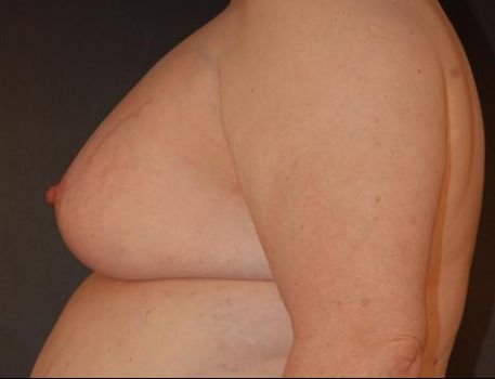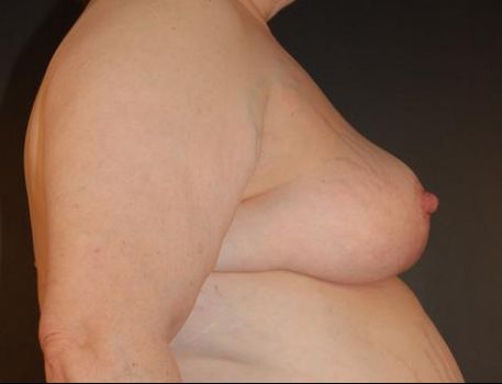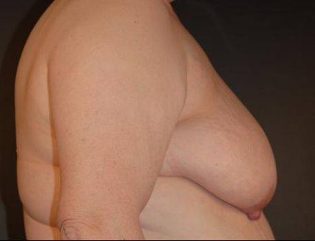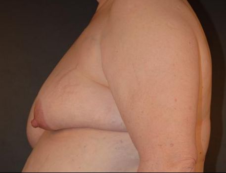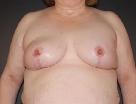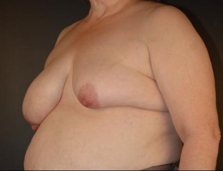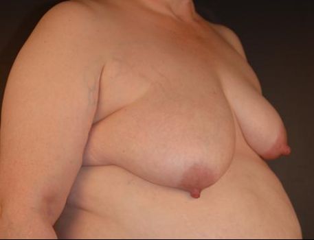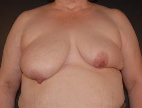 This 56year-old patient has a severe asymmetry and is here regarding her wishes to have a breast lift and augmentation. She wishes to enhance her breast size and improve the shape and symmetry of her breasts. She is 5’7 in height and 220 pounds. I performed a mastopexy and breast augmentation using subpectoral implant placement with 500cc moderate plus profile, smooth, saline implant on the left. And breast reduction on the right.