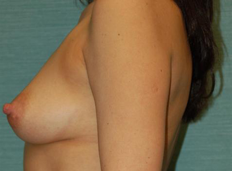 This 48-year old female wishes a breast augmentation to improve her body proportions. She is currently a 36B and wishes to be a C cup bra. Her Height is 5’5 and Weight 130. In general she is well appearing with realistic expectations. Her left inframammary fold is higher than her right and she does have some evidence of pseudoptosis. A bilateral breast augmentation was done using a 300 cc saline moderate plus subpectoral implant placed through the IMF incision. I have suggested a larger implant but she wises the 300cc implant.