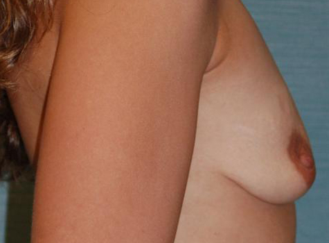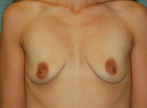 This patient is a 28 year old female who has been thinking about a breast augmentation for over two years. She wishes to improve her body proportions. After having three children witch she breast fed, she wishes to improve her body proportions. Her height is 5’5 and weight 126 pounds, her right breast is larger than her left by a small amount. I performed a bilateral breast augmentation using a 450cc Moderate Plus silicone gel implant placed through the areola incision.