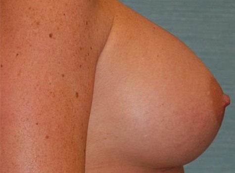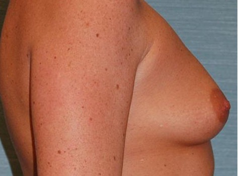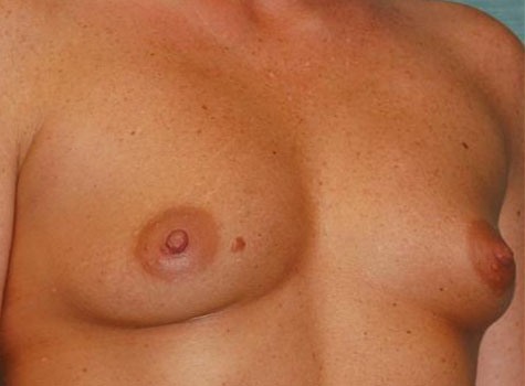 This is a 31-year-old female who wishes a breast augmentation to improve her body proportions. She has been thinking about a breast augmentation for greater than 10 years. She has 2 children for which she has breast fed. She stopped breast feeding greater than 9 years ago. Since then her right breast is larger than her left by approximately 10-15 cc. Weight is 125 pounds. Height 5’4″. I performed a bilateral subpectoral breast augmentation using a 500 cc high profile silicone implant placed through the IMF incision.