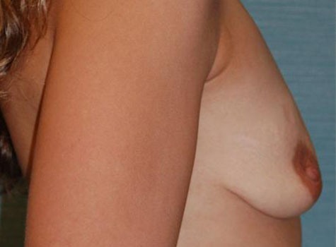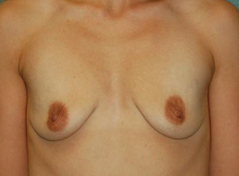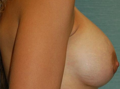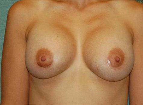 This patient is a 28 year old female who has been thinking about a breast augmentation for over two years. She wishes to improve her body proportions. After having three children witch she breast fed, she wishes to improve her body proportions. Her height is 5’5 and weight 126 pounds, her right breast is larger than her left by a small amount. I performed a bilateral breast augmentation using a 450cc Moderate Plus silicone gel implant placed through the areola incision.