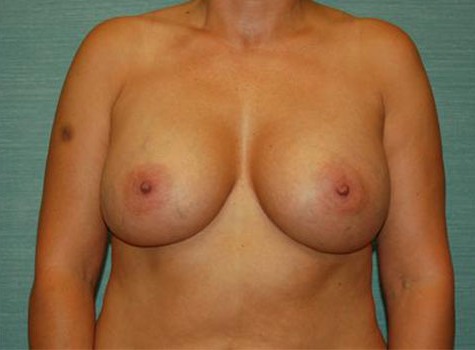 The patient is a 42-year-old female who wishes implant replacement. She had several operations on her breasts and now has bilateral deflations. She now wishes to go bigger than she was previously. She says she was a size D prior and wishes to be a full D/DD. She says she wishes to have a 600 cc implant, and she wishes a silicone implant. I discussed with her the fact that her breasts would be of asymmetrical size given her native asymmetrical size. I will attempt to possibly have different size implants available. She is aware that she will have breast asymmetry and she wishes to continue with the operation. Weight 146 pounds. Height 5’2″. I performed a bilateral implant exchange using the IMF incision with a silicone Moderate Plus 550 cc to 600 cc breast implant.