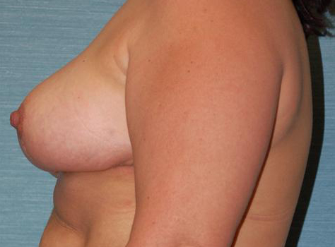 This woman is very satisfied with the results of her breast reduction and lift. Her breasts now have a much more defined shape. She is also very happy to see how this one improvement has enhanced her entire appearance, making her waist look slimmer and longer. Her breasts have a very natural shape, post-procedure, and her incision lines will continue to fade as the healing process continues.