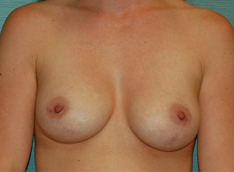 This patient came to me for a revision of her breast. She had previously had a breast augmentation with saline implants behind the muscle 10 years prior. She wanted to increase the volume of her breasts, improve asymmetry of therbreast, and switch to silicone gel implants.