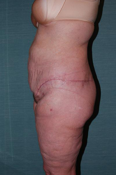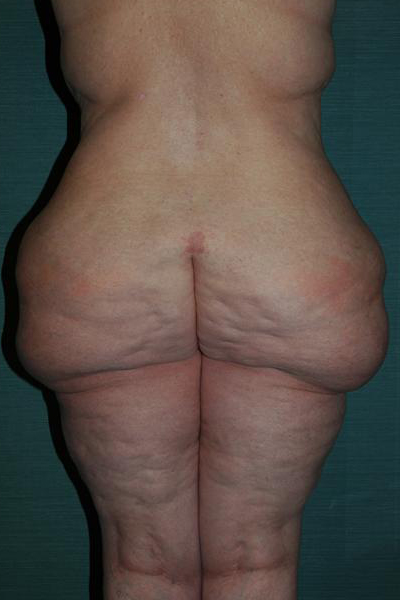 This middle-aged woman was concerned about the appearance of her pear-shaped body. Despite efforts to contour her middle section and lower body with diet and exercise, she was not satisfied with her shape. To find out more about body-contouring cosmetic surgery in Las Vegas, this patient scheduled a consultation with me at my plastic surgery offices. After I reviewed her medical history and examined her existing shape, we discussed her goals and options before deciding on a combination procedure that would incorporate liposuction as well as lift procedures for the buttocks and outer thighs.