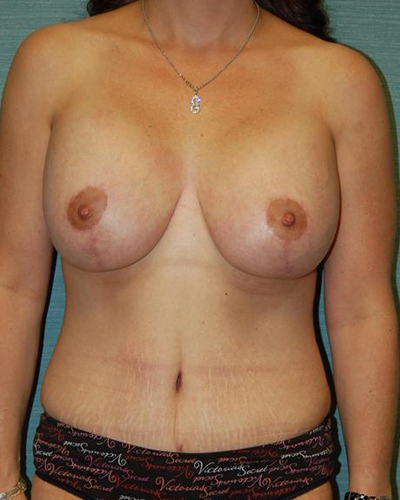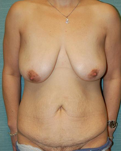 40-year-old who had a significant weight loss and wishes body contouring and a breast augmentation with a lift to improve her body proportions.She was a DD, after losing 40 pounds she feels she is approximately a D now and wishes to be a DD or full DD. She feels her right breast is larger than the left.