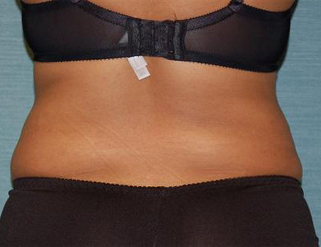 Her procedure was performed in an outpatient setting and she was able to head home just a few hours after surgery was completed. Her results are dramatic from every angle. From the front, you can see that her “love handles” have been downsizes. From the side, her belly appears noticeably flatter. From behind, the folds on her lower back have been eliminated.