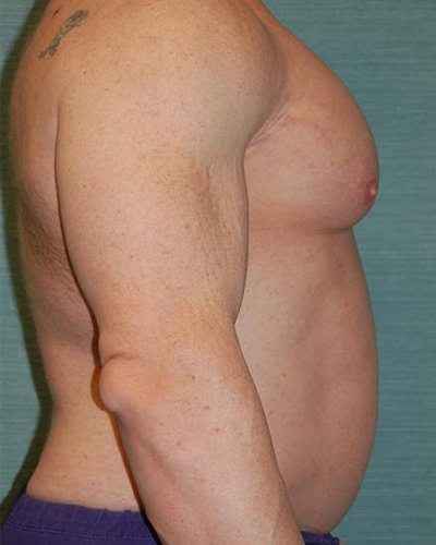 This man is now much happier with the size and shape of his chest, and his pectoral muscles are larger and firmer. Increasing the size of his chest has actually helped his stomach appear smaller, and he looks healthier and more toned as a result. He is also pleased that he now has a more athletic physique.